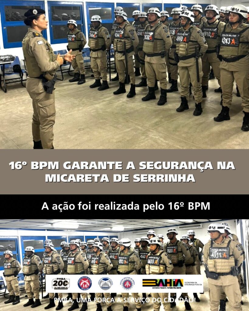 Com um efetivo de aproximadamente 500 policiais, o 16º Batalhão de Polícia Militar (BPM) assegurará, em parceria com outros órgãos de segurança pública, a proteção dos foliões durante os três dias da Micareta de Serrinha, sede do Batalhão Sisaleiro.