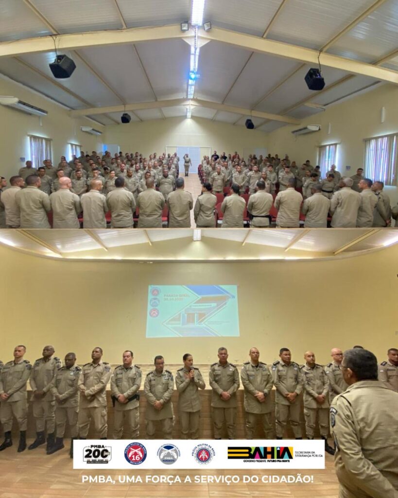 Na manhã desta quinta-feira (30), o 16º Batalhão de Polícia Militar realizou sua primeira Parada Geral sob o comando da Tenente-Coronela PM Maria Aparecida, no Centro Juvenil Santo Alessandro, em Serrinha. O encontro reuniu oficiais e praças para fortalecer a integração e o espírito de corpo da unidade.