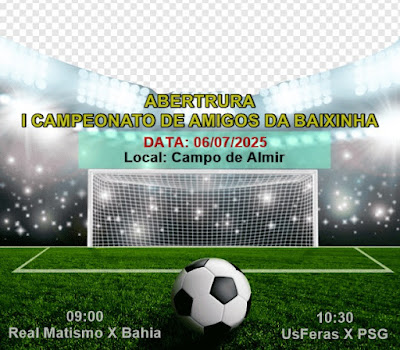 Domingo, dia 06 de julho, terá início o Primeiro Campeonato de Amigos da Baixinha com a participação de 6 equipes. A competição será realizada no campo de Almir aos domingos pela manhã, com dois jogos por rodada.