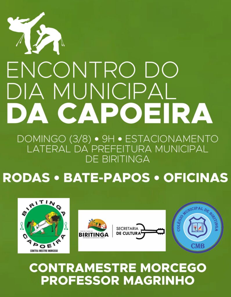 Organizado pela Secretaria Municipal de Cultura, em parceria com o Grupo Biritinga Capoeira e o Colégio Municipal de Biritinga, o encontro é uma homenagem aos praticantes da arte no município, reafirmando a importância da capoeira como ferramenta de educação, cidadania e identidade cultural.