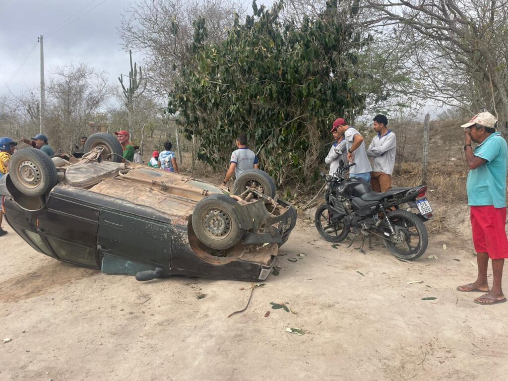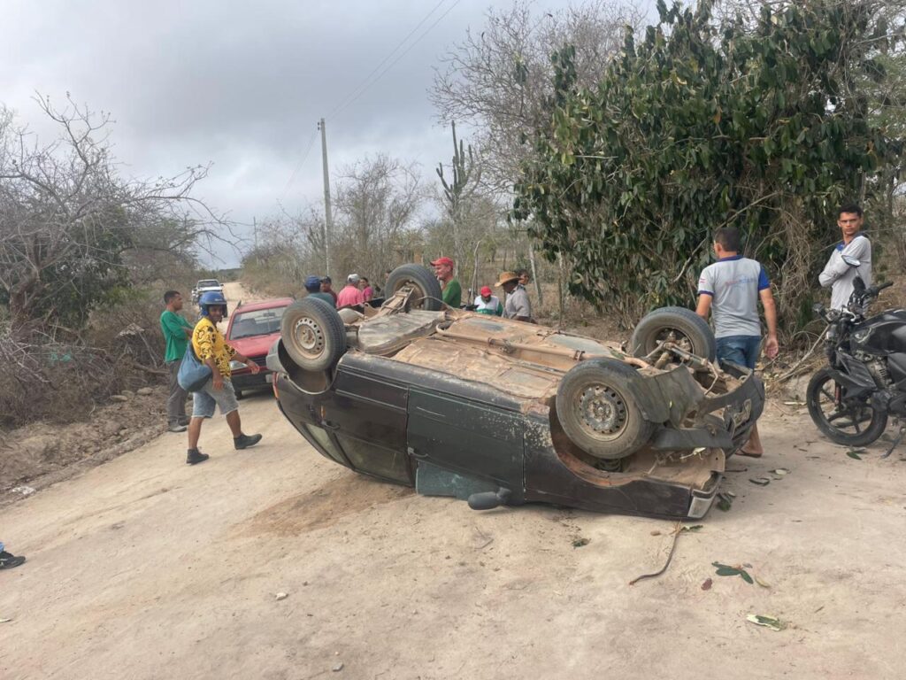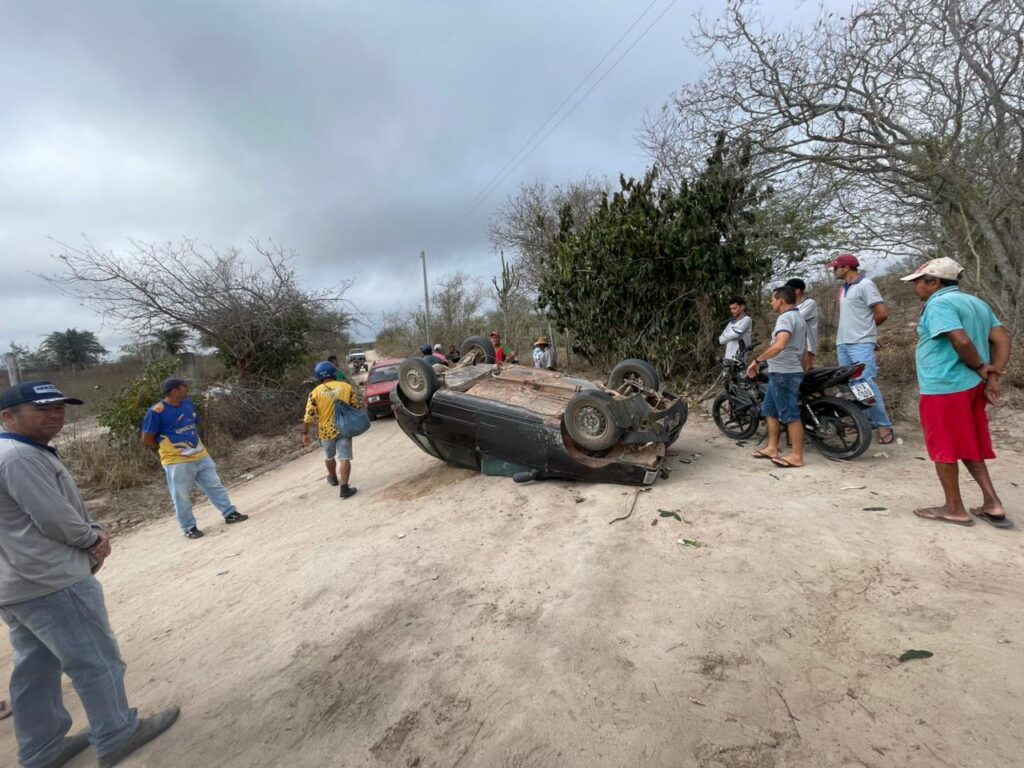Um carro capotou na manhã da última terça-feira (21) em uma estrada vicinal que liga as localidades de Tingui e Caldeirão, na zona rural do município de Araci, região sisaleira da Bahia.