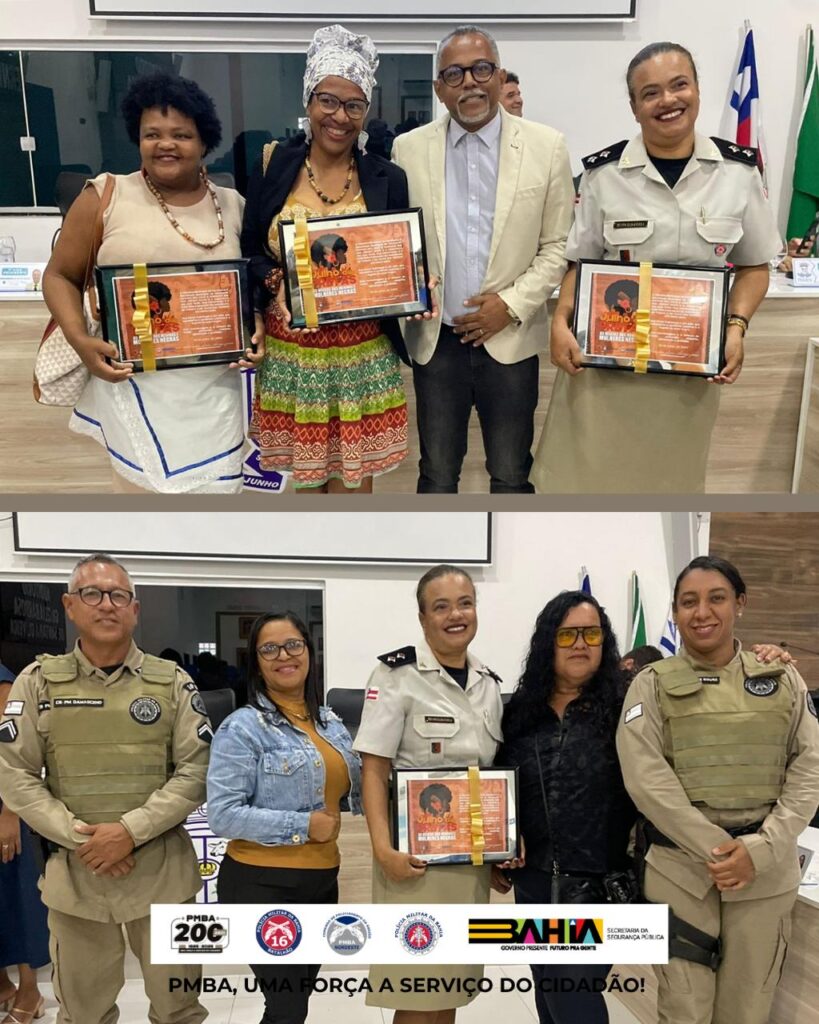 Durante a solenidade, foram homenageadas 12 mulheres negras por suas trajetórias de vida e contribuição social. Entre elas, a Tenente PM Elisângela, comandante da Ronda Maria da Penha Região Sisaleira e representante do 16º Batalhão de Polícia Militar, que recebeu a honraria e emocionou o público ao recitar o poema “Vozes – mulheres”, de Conceição Evaristo, ressaltando a força e a beleza da mulher negra.