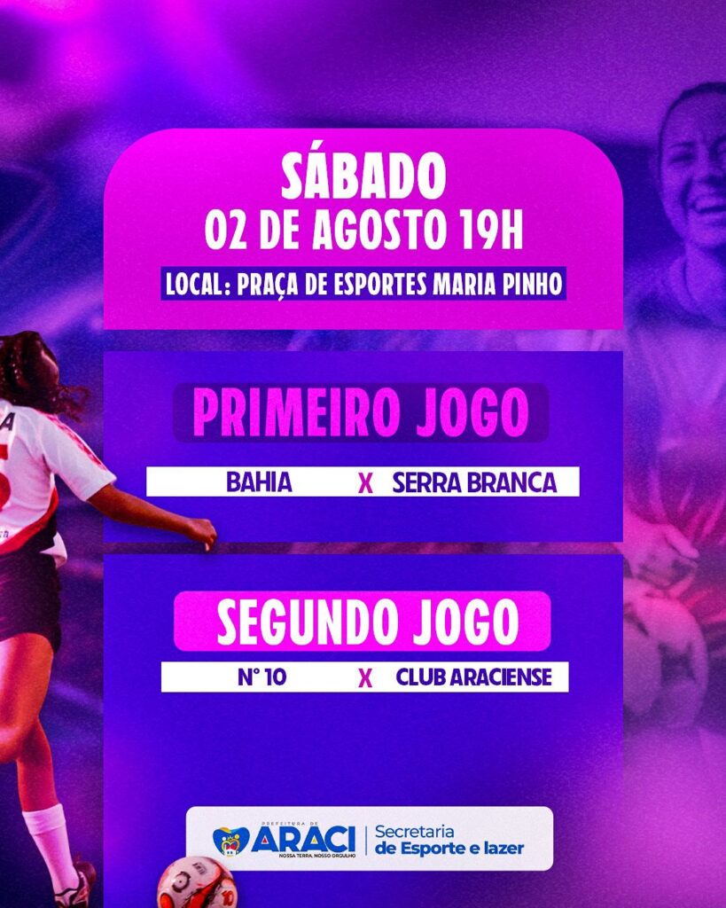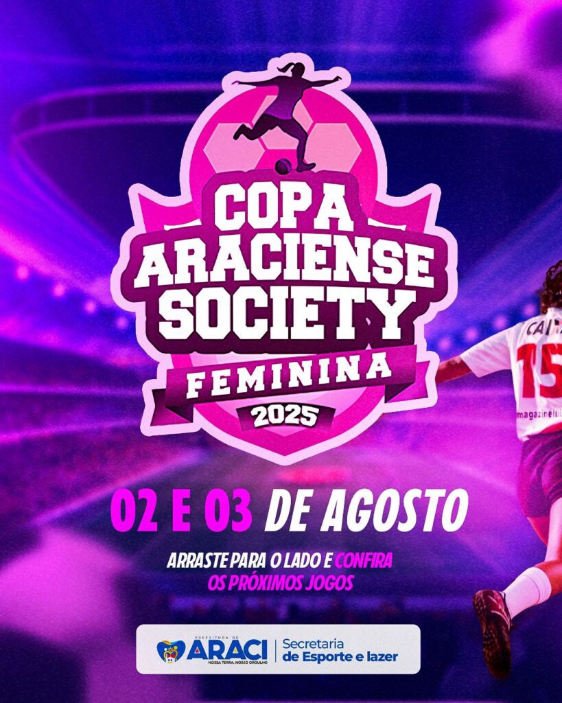 A bola vai rolar em Araci neste fim de semana com a realização da Copa Araciense Society Feminina 2025, promovida pela Prefeitura de Araci, por meio da Secretaria de Esporte e Lazer. A competição promete agitar o público com partidas entre equipes locais, valorizando o futebol feminino e incentivando a prática esportiva entre as mulheres do município.
