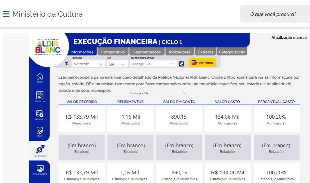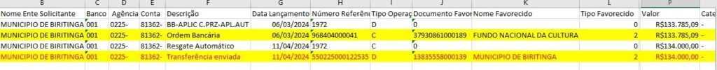 Informações obtidas pelo Portal Massapê comprovam que o repasse dos valores para conta específica da Política Nacional Aldir Blanc (PNAB) de Biritinga aconteceu em 06/03/24, ou seja, há dois anos.