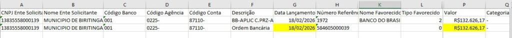 Acessando o demonstrativo, nota-se que cerca de um mês após o recebimento, o montante teria sido transferido para contas vinculadas à Prefeitura, e posteriormente redistribuído sem transparência sobre sua destinação final.