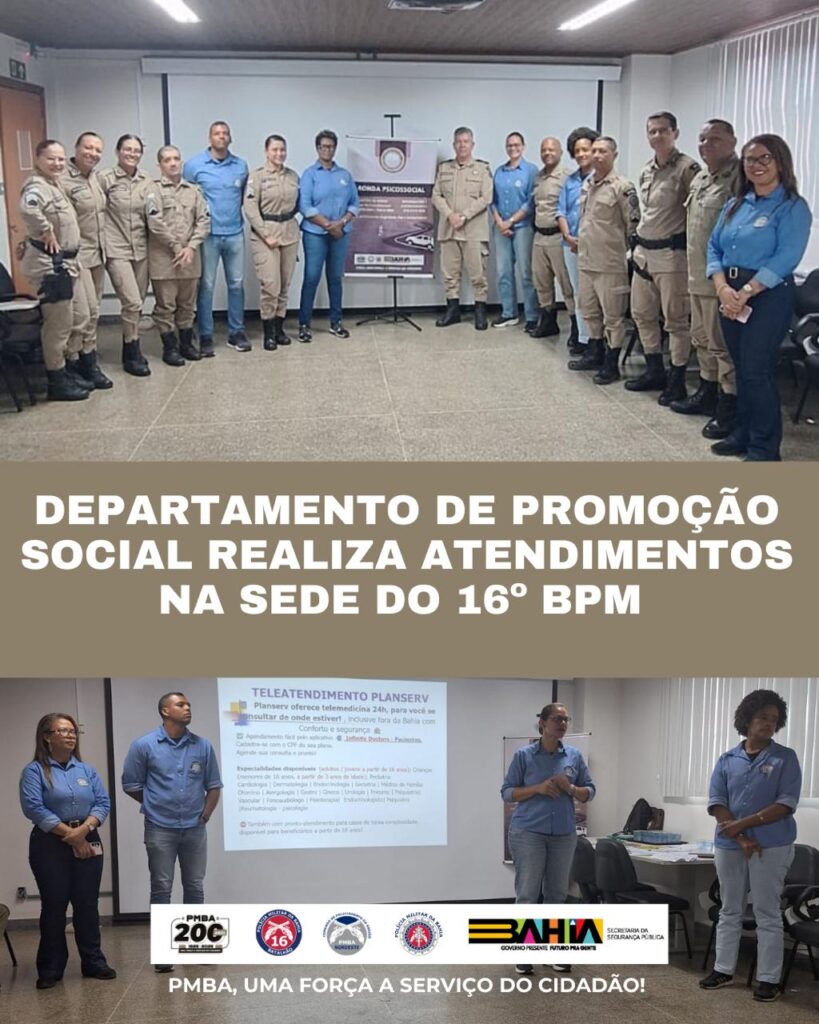 Na manhã desta terça-feira (26/08), o Departamento de Promoção Social (DPS) da Polícia Militar da Bahia esteve presente na sede do 16º BPM oferecendo atendimento aos policiais militares. A equipe multiprofissional do DPS permaneceu no local até as 15h, garantindo suporte social, psicológico e informações sobre benefícios e direitos.