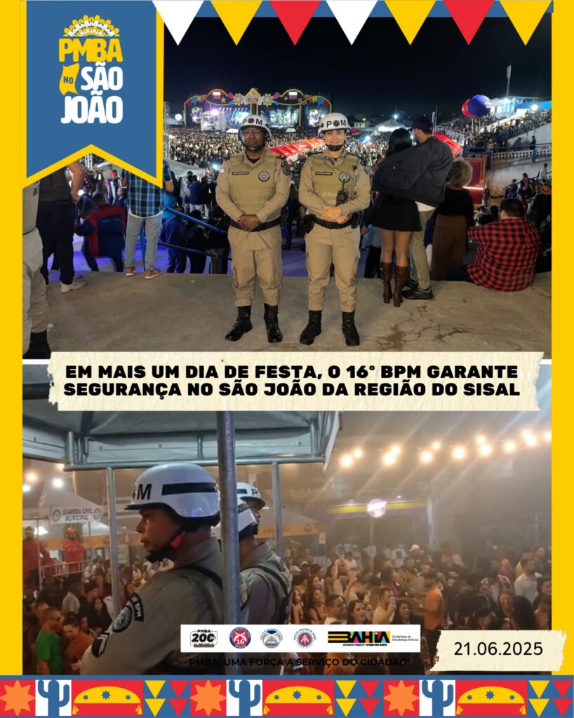Nesse sábado (21), o 16º Batalhão de Polícia Militar seguiu firme na missão de garantir a segurança da população durante os festejos juninos na região do Sisal.