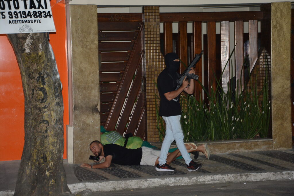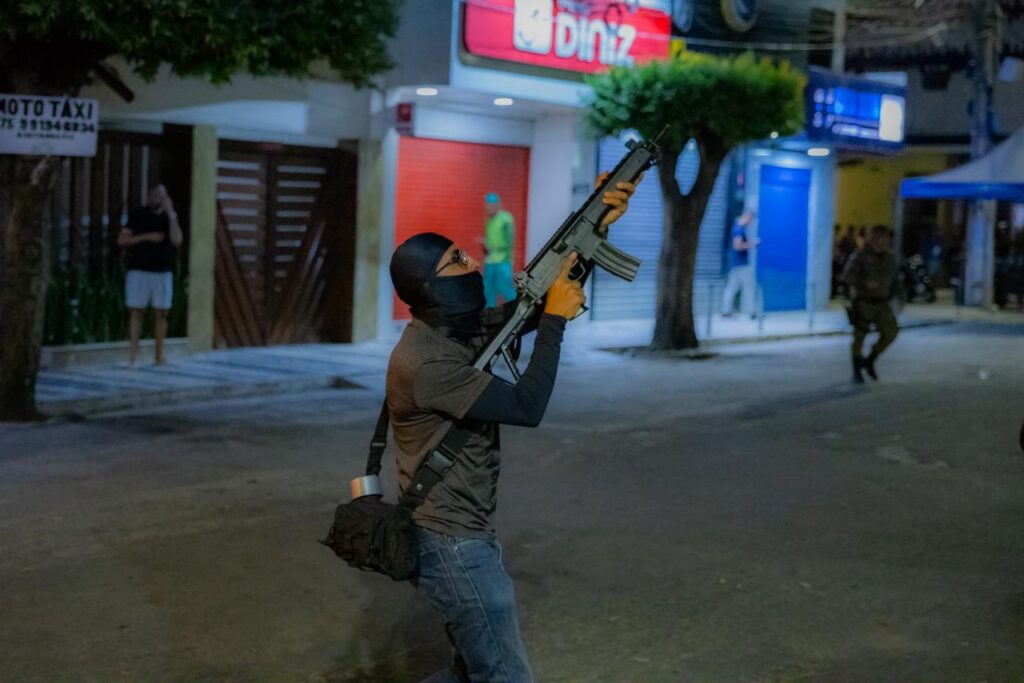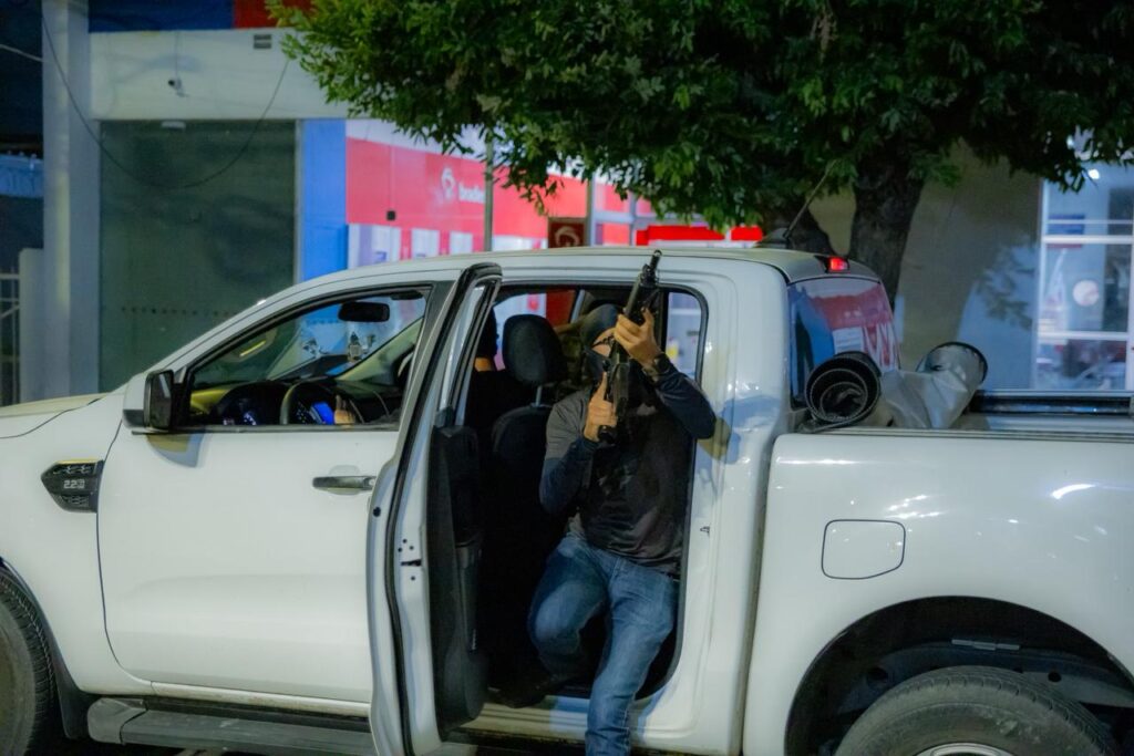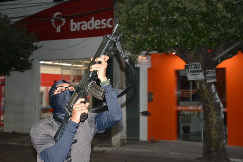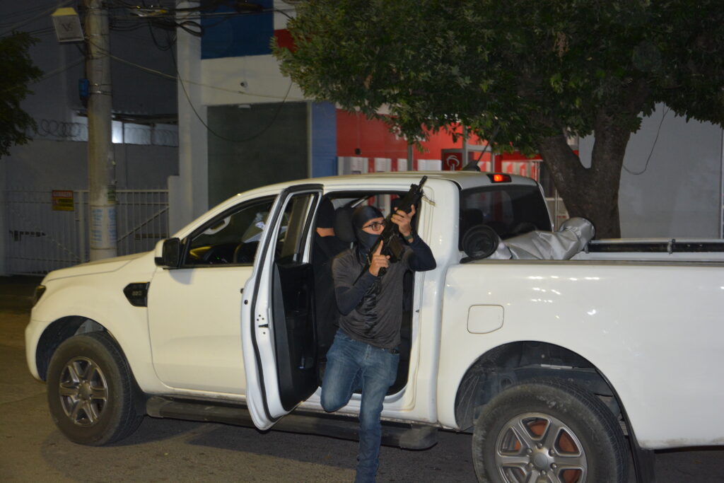 Já no período noturno, a partir das 22h, foi realizada a simulação prática, que reproduziu um cenário de ataque a instituição financeira. A ação chamou a atenção da população, que compareceu em grande número para acompanhar a movimentação das equipes e o desempenho das forças de segurança.