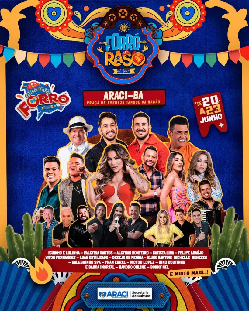 O São João em Araci já tem nome, data e ritmo definido: de 19 a 23 de junho, a cidade vai ferver com o Forró do Raso 2025, uma das festas mais esperadas do interior baiano. A Praça de Eventos Tanque da Nação será o palco principal da programação, que reúne grandes nomes da música nordestina, talentos locais e um repertório feito sob medida para quem ama forró, xote, piseiro e muito arrasta-pé.