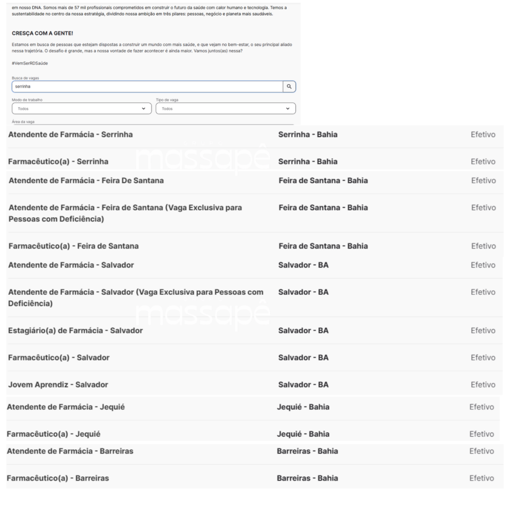 A RD Saúde, maior rede de varejo farmacêutico do país, inicia 2026 com um amplo processo de contratação e oferta cerca de 3 mil vagas para preenchimento imediato em diversas regiões do Brasil. As oportunidades não exigem experiência prévia e contemplam postos de trabalho nas farmácias Raia e Drogasil, além dos centros de distribuição logística do grupo, com salários que variam de R$ 1,9 mil a R$ 5,5 mil e benefícios atrativos.