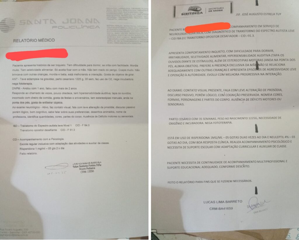 “Foi uma falta de respeito muito grande. Eu pedi a ficha do meu filho para uma consulta, e a diretora disse que o relatório só existia porque eu, mãe, quis fazer, que meu filho era uma criança normal”, desabafa a mãe, visivelmente abalada. Segundo ela, o filho é diagnosticado com autismo leve e TOD, com dois laudos emitidos por profissionais de saúde, um deles da clínica Santa Joana Nery, de Serrinha, e outro do Centro de Atendimento Educacional Especializado (CEA). “Ela insinuou que eu comprei os médicos, que só eu via esse problema. Isso é um absurdo”, declarou no vídeo.