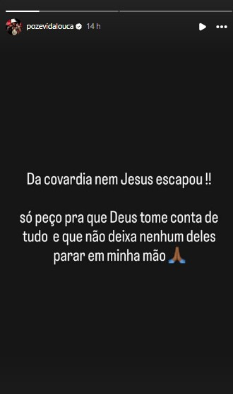“Da covardia nem Jesus escapou. Só peço para que Deus tome conta de tudo”, escreveu o artista.