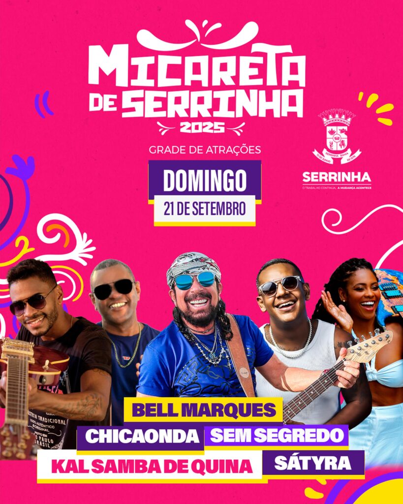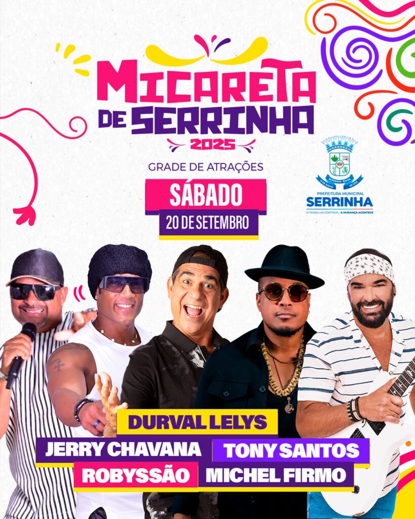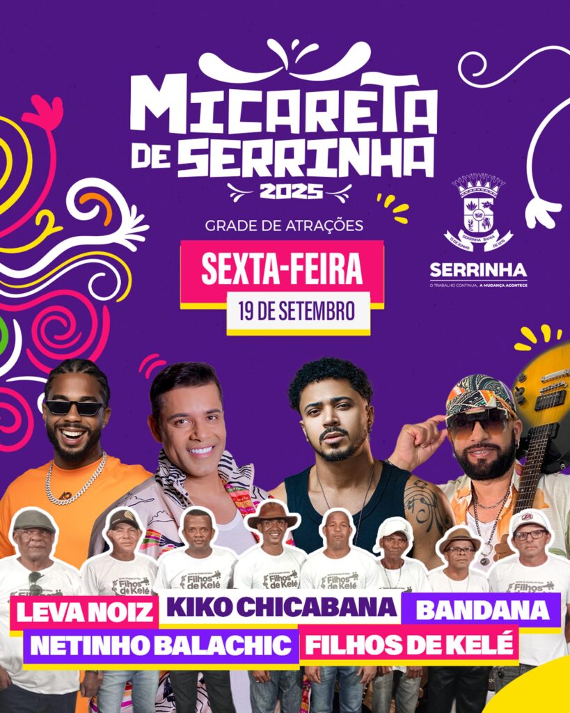 A Prefeitura de Serrinha anunciou nesta segunda-feira (15) a tão aguardada grade de atrações da Micareta de Serrinha 2025, um dos maiores eventos culturais da região. A festa será realizada entre os dias 19 e 21 de setembro e promete reunir multidões para três dias de música, dança e muita energia.