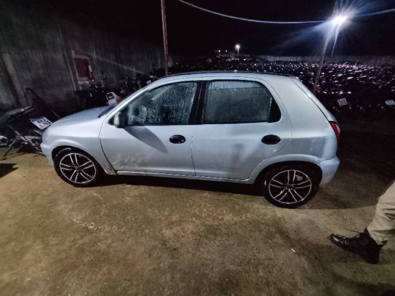 Durante as diligências, o veículo apontado na denúncia foi localizado trafegando parcialmente na contramão. Após a abordagem, o condutor informou que estava retornando a um estabelecimento para buscar o controle do equipamento de som.