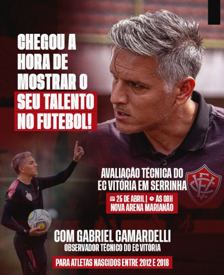 Jovens atletas da região sisaleira terão uma grande oportunidade de dar os primeiros passos rumo ao futebol profissional. O Esporte Clube Vitória realizará uma avaliação técnica em Serrinha, com a presença do observador técnico Gabriel Camardelli.