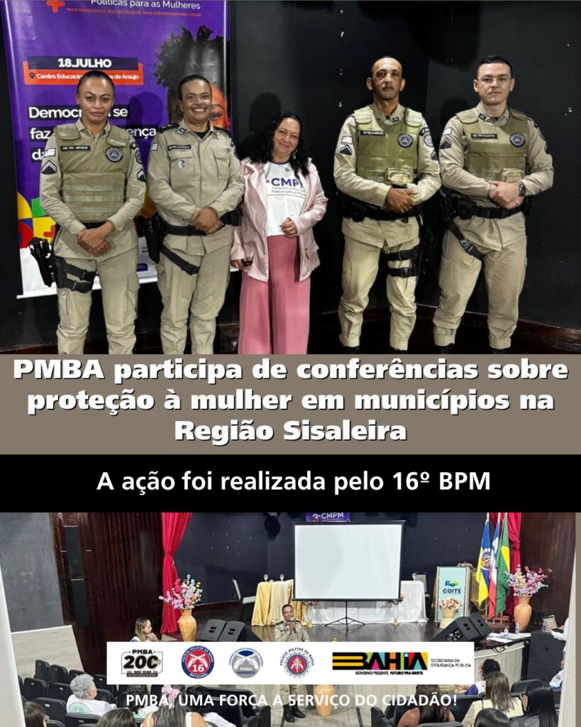 A Polícia Militar da Bahia, por meio da Ronda Maria da Penha da Região Sisaleira, marcou presença durante o mês de julho nas Conferências Municipais de Políticas Públicas para Mulheres realizadas em seis cidades do território de atuação do 16º Batalhão de Polícia Militar (BPM).