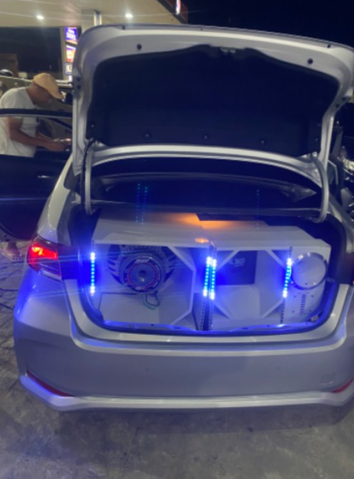 Equipamentos do Veículo Toyota/Corola: 01 alto falante grave 15” SW 4.5K 02 alto falante médio 12” ML 1K8 02 cornetas de trio 01 TI 02 módulos K5 01 módulo 5k 01 módulo 400 01 fonte 200 amperes