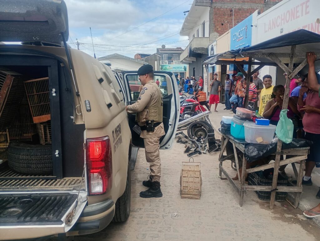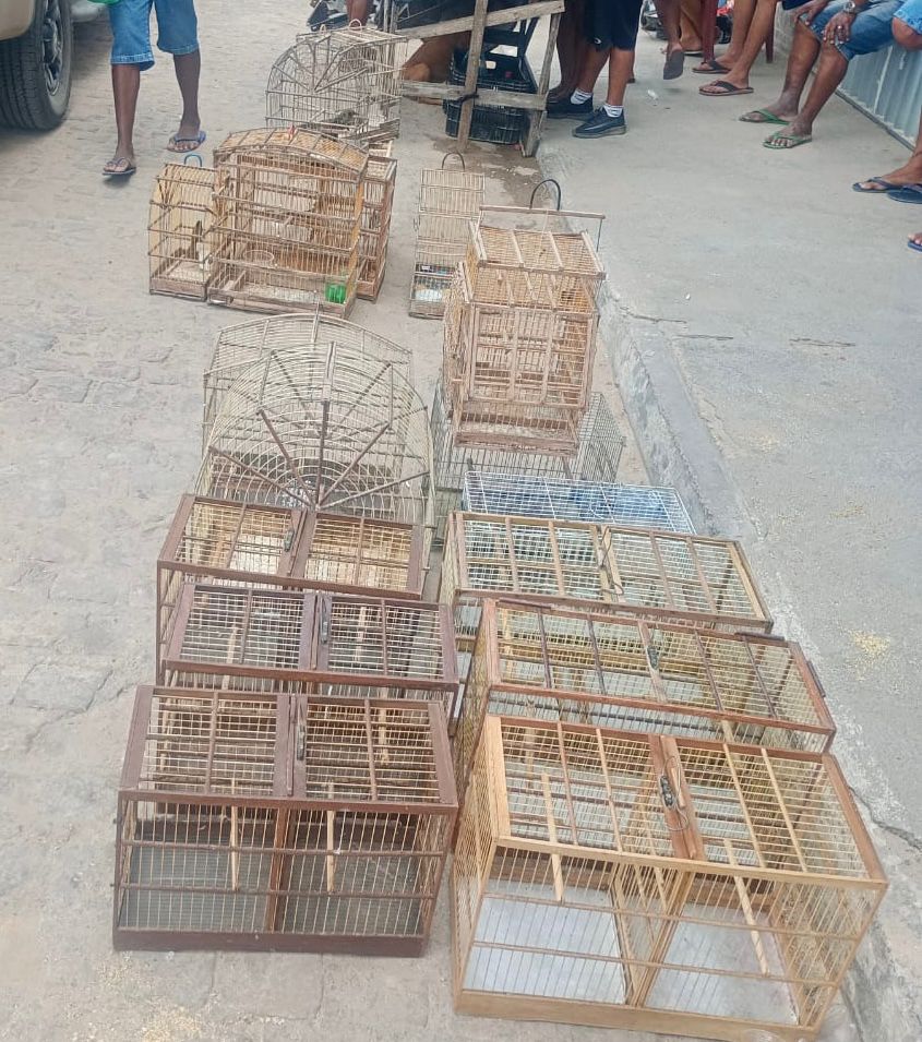 De acordo com informações da corporação, a guarnição foi acionada após denúncia sobre a comercialização ilegal de animais silvestres no local. Ao chegar à feira, os policiais confirmaram a veracidade da denúncia, encontrando diversas gaiolas com aves de diferentes espécies.