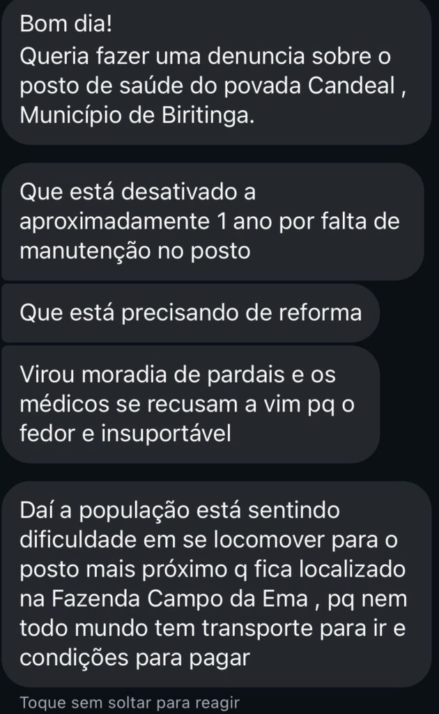 A denúncia expõe a negligência da Secretaria Municipal de Saúde e da Prefeitura de Biritinga, que deixaram uma estrutura pública essencial cair no esquecimento, prejudicando diretamente o acesso da população a um direito básico garantido pela Constituição: a saúde.