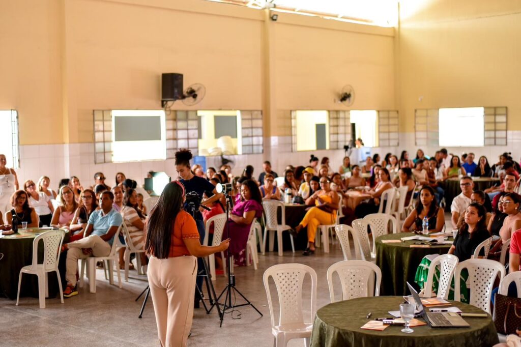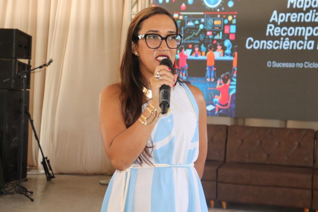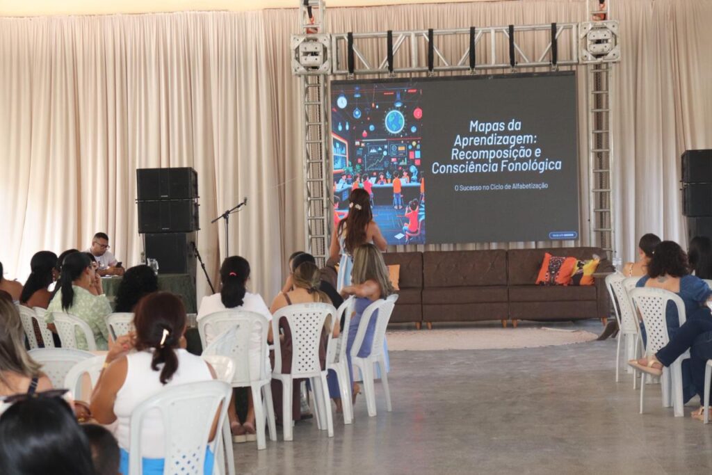 No turno da tarde, as atividades seguiram com uma programação diversificada, atendendo diferentes segmentos da educação básica. No Centro Paroquial, a professora Vanynha Teles conduziu a roda de conversa com o tema “Mapas da Aprendizagem: como a recomposição e a consciência fonológica garantem o sucesso do ciclo alfabetizador”, direcionada a professores dos anos iniciais do Ensino Fundamental e educadores do tempo integral.