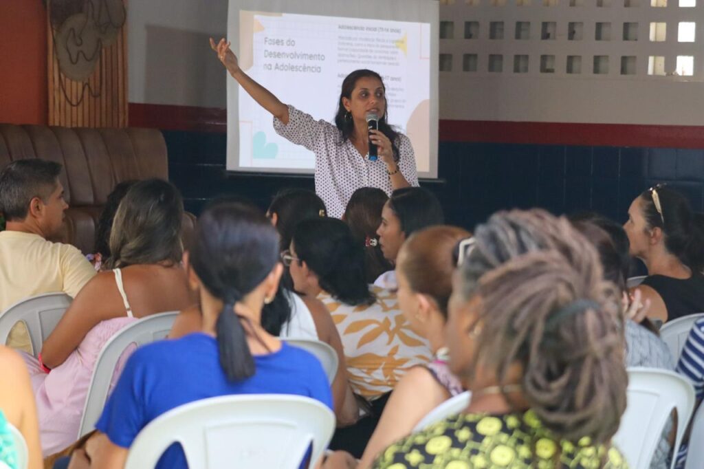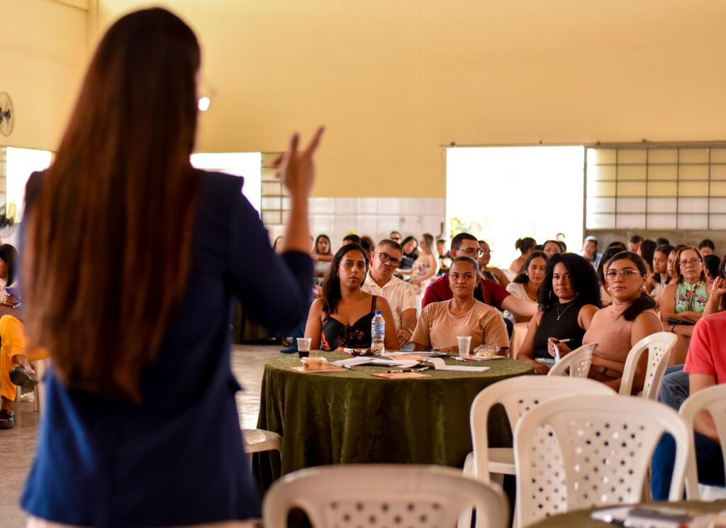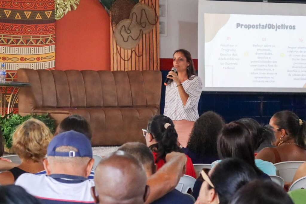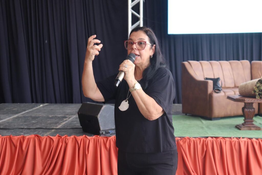No CEMOB, a professora Joseneida Eloa abordou o tema “A escola que dialoga com as adolescências: práticas, escuta e relações no chão da sala de aula nos anos finais”, em um encontro voltado para professores do Ensino Fundamental anos finais e educadores do tempo integral, reforçando a importância da escuta, do vínculo e das relações humanas no ambiente escolar.