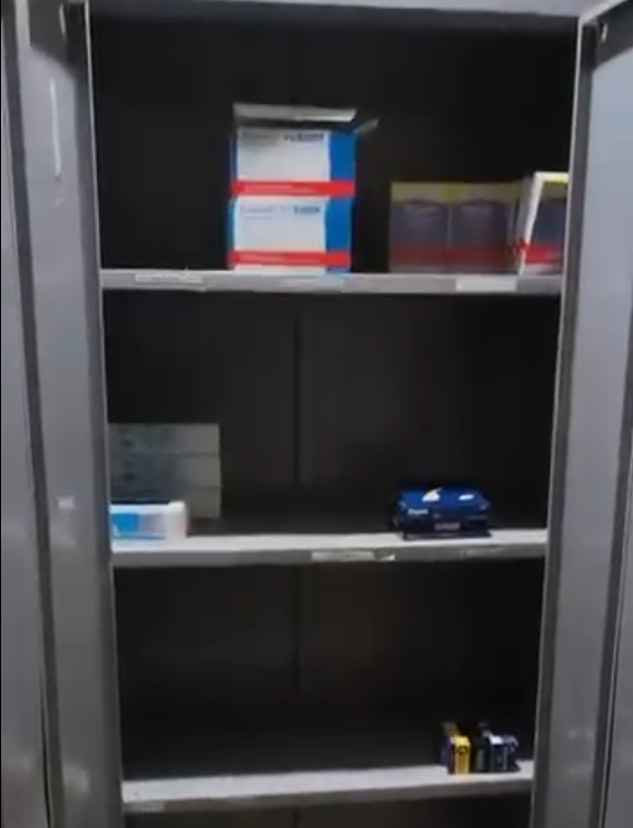 “Bem pessoal, hoje 15 de novembro de 2025, mais uma vez estamos aqui acompanhando o estoque de medicação na farmácia básica, onde fomos encontrar pacientes que estavam vindo na farmácia básica buscar medicamentos principalmente de uso controlado e ao mesmo tempo chegavam e não encontravam, não tem medicamento. E aí para nossa surpresa, que na verdade não é surpresa, é de fato algo rotineiro que acontece com a gestão, a falta de atenção com a saúde, vocês vão ver aí o cenário que se encontra o estoque de medicação, quase vazio. Queremos uma cobrança aí da gestão, do gestor, por tamanha falta de atenção com a saúde.”
